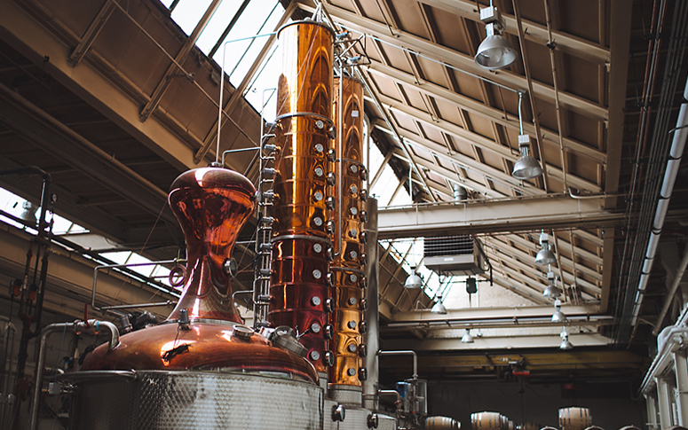 Le whiskey est distillé en BATCH dans des alambics hybrides. C’est-à-dire une distillation en “pot still” en premier et un passage dans 2 alambics à colonne par la suite. Mais contrairement à une grande majorité de distilleries américaines plus industrielles, ils ne font pas la distillation en continu. La distillation prendre 10 heures et produit l’équivalent de 3-4 barils. Le cœur de distillation qui est gardé est seulement 60%. Entre chaque “batch” tout est nettoyé.