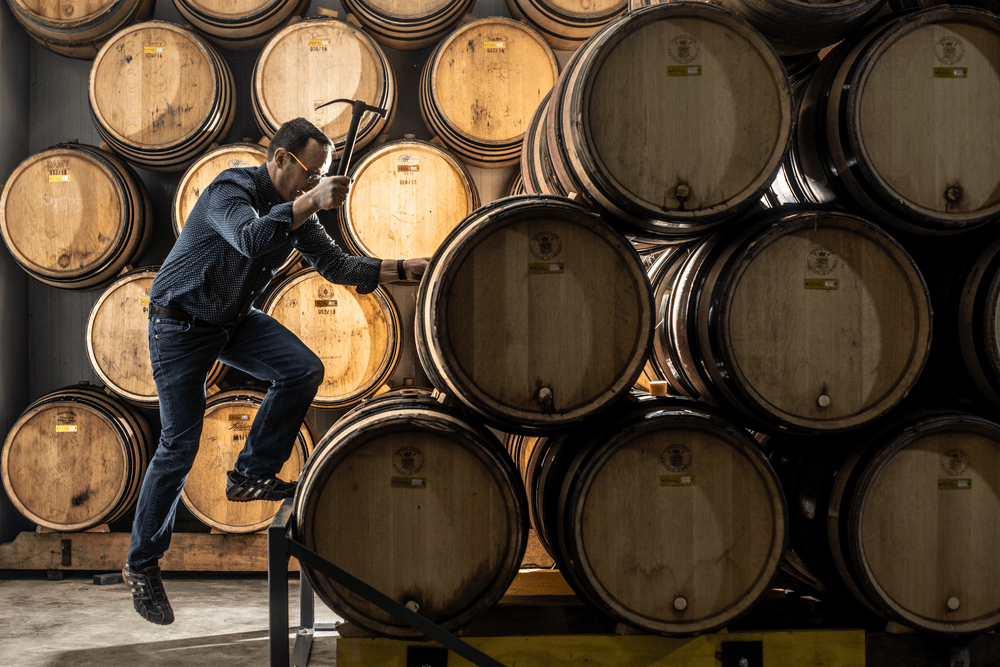 Gilles est un grand amateur de scotch whisky, un passionné des saveurs, qui vit encore aujourd’hui entre la France et le Royaume-Uni, mais aussi voyage (normalement) énormément pour présenter ses champagnes à travers le monde. Régulièrement après une journée à présenter et faire goûter ses produits, c’est avec un whisky qu’il termine sa journée. Il a eu l’idée un jour de littéralement marier ses 2 passions whisky et champagne/ratafia. Il achète donc des fûts de whisky de partout à travers le monde (scotch, whisky, bourbon) et les fait vieillir dans ses fûts de Côte du Rhône ayant contenu du Ratafia pour au moins 6 ans.