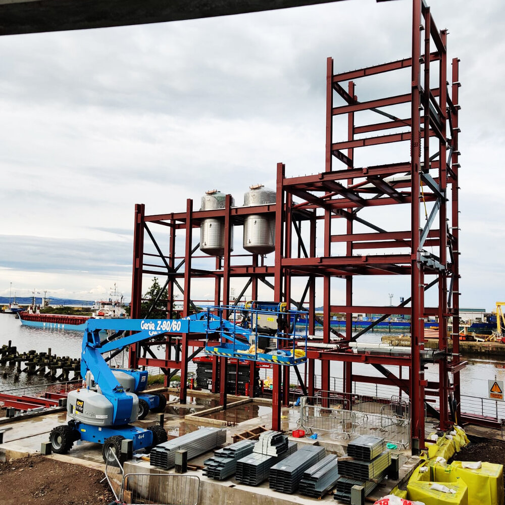 Le gin est fait dans ce qu’ils appellent le Stillhouse (aller voir), mais la distillerie de whisky est en construction. Elle sera directement sur les quais dans le port. Ce sera, comme la distillerie Mackmyra en suède, une distillerie verticale fonctionnant par gravité. Le première de ce type en écosse. La construction avance et ce qui n’était encore qu’un plan lors de notre première commande de gin est en train de prendre forme. Voici où ça en est rendu.