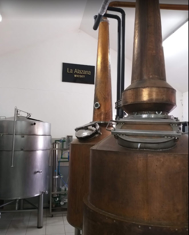 Leur whisky est un single malt qu’ils font à la “méthode écossaise” dans des « Pot Still » en cuivre. Pour les gens du Club de Whisky de Québec, vous vous rappellerez que lors de la dégustation des 2 single malt de La Alazana, le 8 septembre 2020, Lila (une des propriétaires) et son fils nous ont fait découvrir leurs produits et leur inspiration pour les réaliser.