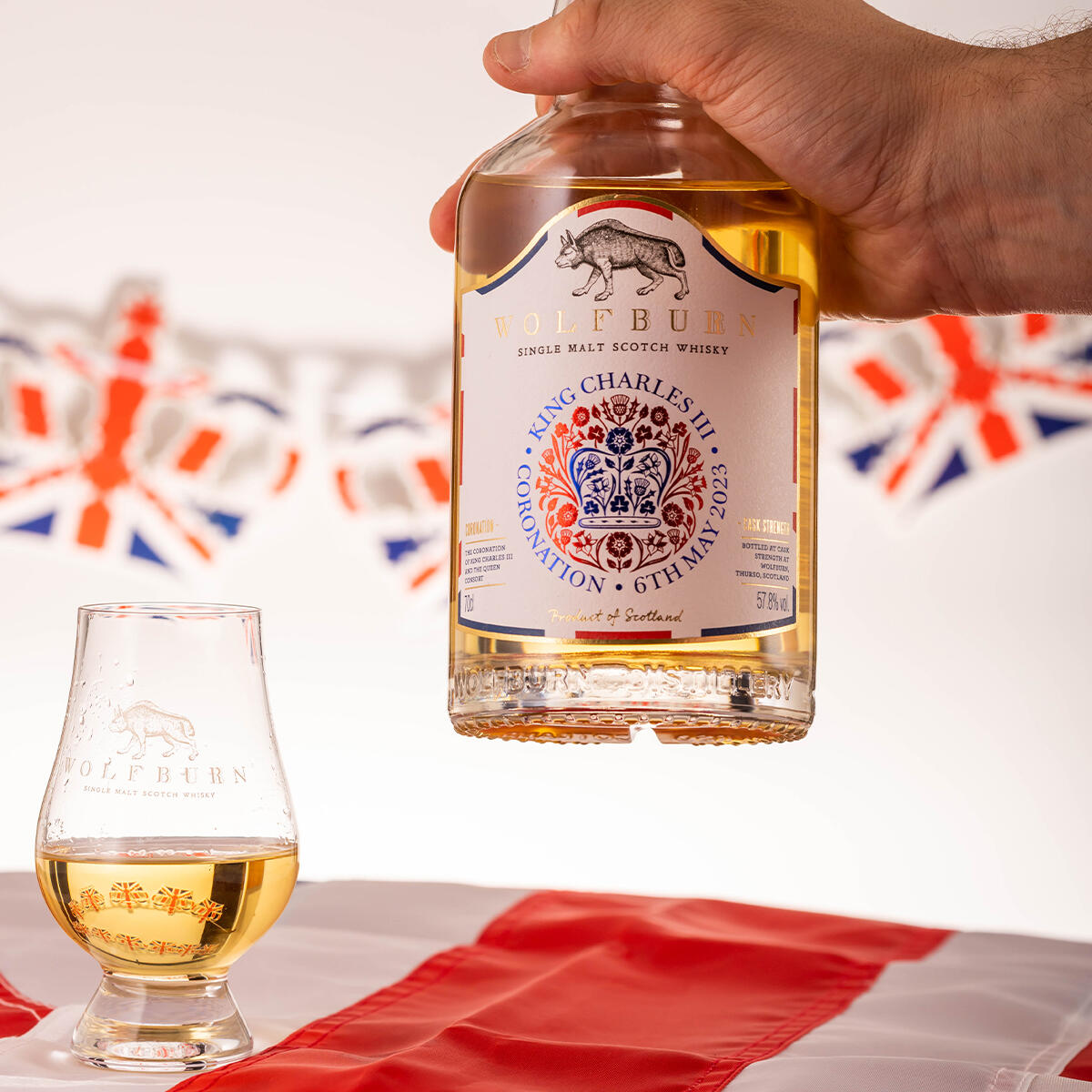 Description (en anglais) du site web de Wolfburn : To celebrate the historical occasion of the Coronation of His Majesty King Charles III we have crafted a special release, based on the flavour profile most enjoyed by His Royal Highness during his visit to Wolfburn Distillery.Crafted from unpeated spirit matured for a little over seven years in first-fill bourbon barrels, this whisky shows off the best of Wolfburn’s signature soft, sweet spirit, with a remarkable depth of flavour, being bottled at an undiminished 57.8%. Consisting of just 600 bottles in total, this is truly a dram fit for a king.TASTING NOTES