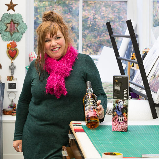 Chaque bouteille de la série est illustrée par un(e) artiste écossais(e) différent(e) du Glasgow School of Art. L'artiste pour cette emballage est Ashley Cook.